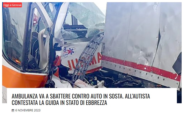 Il 2024 non è iniziato nel migliore dei modi con l’incidente di Pordenone dove un’ambulanza si è scontrata con un camion tre morti e due feriti, il 27 dicembre 2023 Urbino, incidente tra bus e ambulanza: 4 morti. e ancora 24 dicembre 2023, Incidente a Melzo: ambulanza si ribalta sulle auto in sosta, 20 dicembre, Incidente a Ferrara, ambulanza contro un Tir: quattro feriti, uno è grave 13 dicembre 2023 nel Bolognese, L’ambulanza si schianta su un muretto, morta una donna. La figlia diversamente abile in rianimazione e via via di seguito… Roma, Milano, Torino, Caserta, Chioggia, Empoli, Taranto, Campiglia Marittima, Palermo… chi più ne vuole ne metta, basta farsi un giro sul web e ti esce di tutto!!